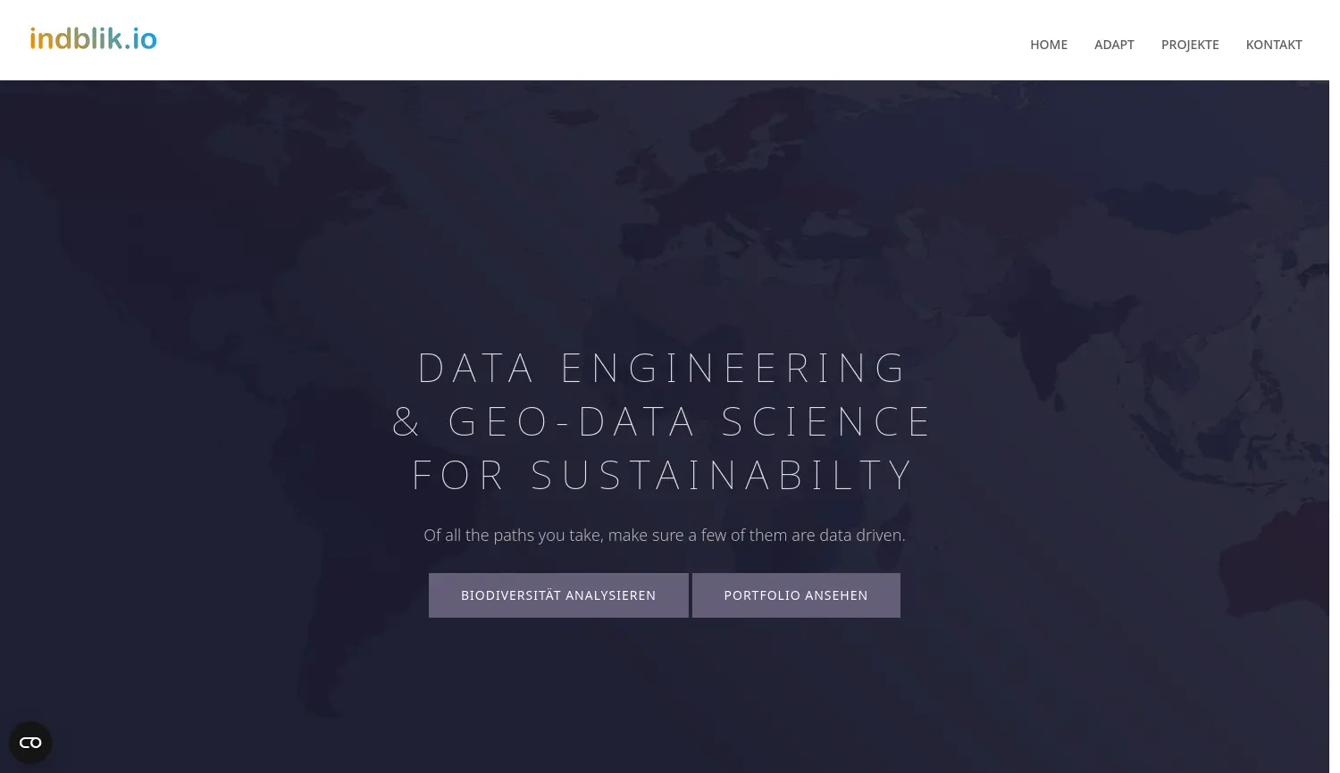 Data Engineering und Geo-Data Science für Nachhaltigkeit indblik.io ist ein deutsches Beratungsunternehmen, das sich auf räumlich-zeitliche Datenanalysen, Data Engineering und die Entwicklung datengetriebener Geo-Produkte spezialisiert hat.