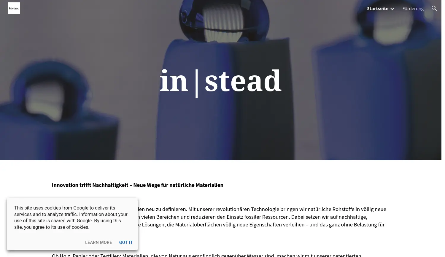 Innovation trifft Nachhaltigkeit – Neue Wege für natürliche Materialien. in|stead entwickelt eine patentierte, umweltfreundliche Technologie zur Funktionalisierung natürlicher Materialien, um Kunststoffe zu ersetzen und Oberflächen wasserabweisend zu machen.
