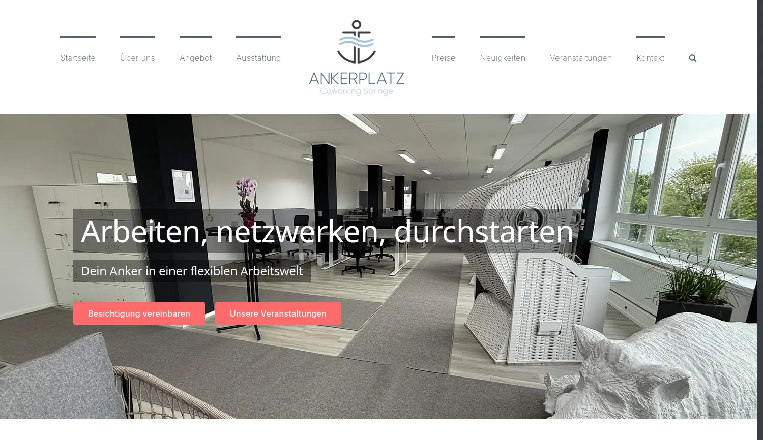 Dein Anker in einer flexiblen Arbeitswelt Der Ankerplatz bietet flexible Arbeitsplätze, Projektbüros und Besprechungsräume in einer inspirierenden Coworking-Community in Springe.