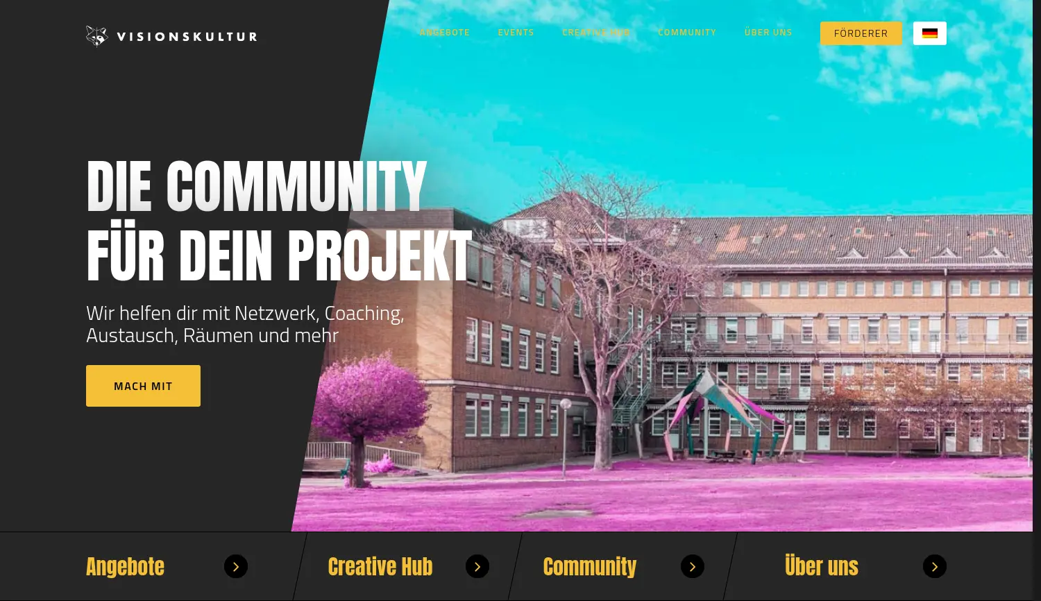 Ideenförderung und Standortentwicklung in Bremen Visionskultur ist eine gemeinnützige Organisation zur Förderung von Innovation und Projekten in Bremen durch Coaching, Vernetzung und kostenlose Kreativ- und Arbeitsräume.
