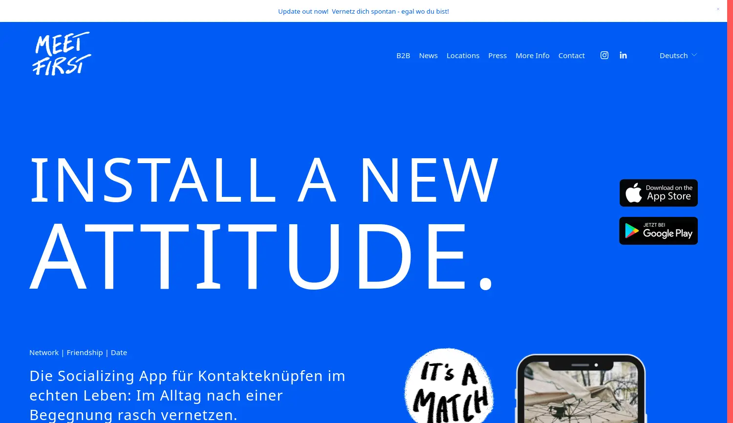 Pushing real encounters – Die Socializing App für echte Kontakte im Alltag. Meet First ist eine Socializing App, die Menschen nach echten Begegnungen im Alltag oder bei Events spontan digital vernetzt.