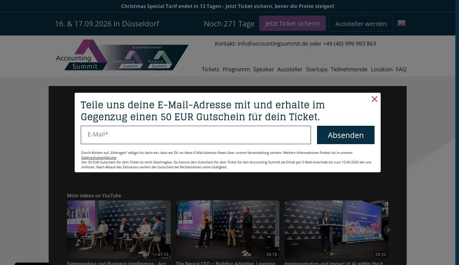 THE FUTURE OF FINANCE – die Finance-Messe für Digitalisierung und Innovation in der Finanzabteilung. Der Finance Summit ist eine führende Messe und Konferenz, die CFOs und Head of Finance zusammenbringt, um aktuelle Herausforderungen der Digitalisierung und Innovation im Finanzwesen zu diskutieren.