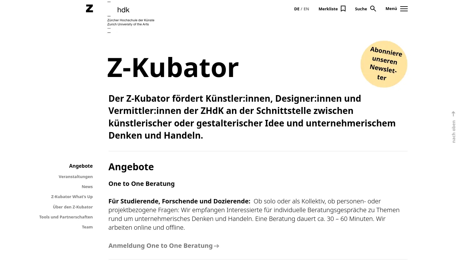 Bringing Creative Ideas to Economic Reality: The Z-Kubator Approach Der Z-Kubator, Teil des Zentrums für Kreative Wirtschaft Zürich (ZCCE), fördert kreative Talente an der Zürcher Hochschule der Künste, indem er ästhetische Ideen mit unternehmerischem Denken verbindet und Studierende sowie Absolventen bei der Umwandlung ihrer kreativen Projekte in nachhaltige und wirtschaftlich erfolgreiche Unternehmen unterstützt.