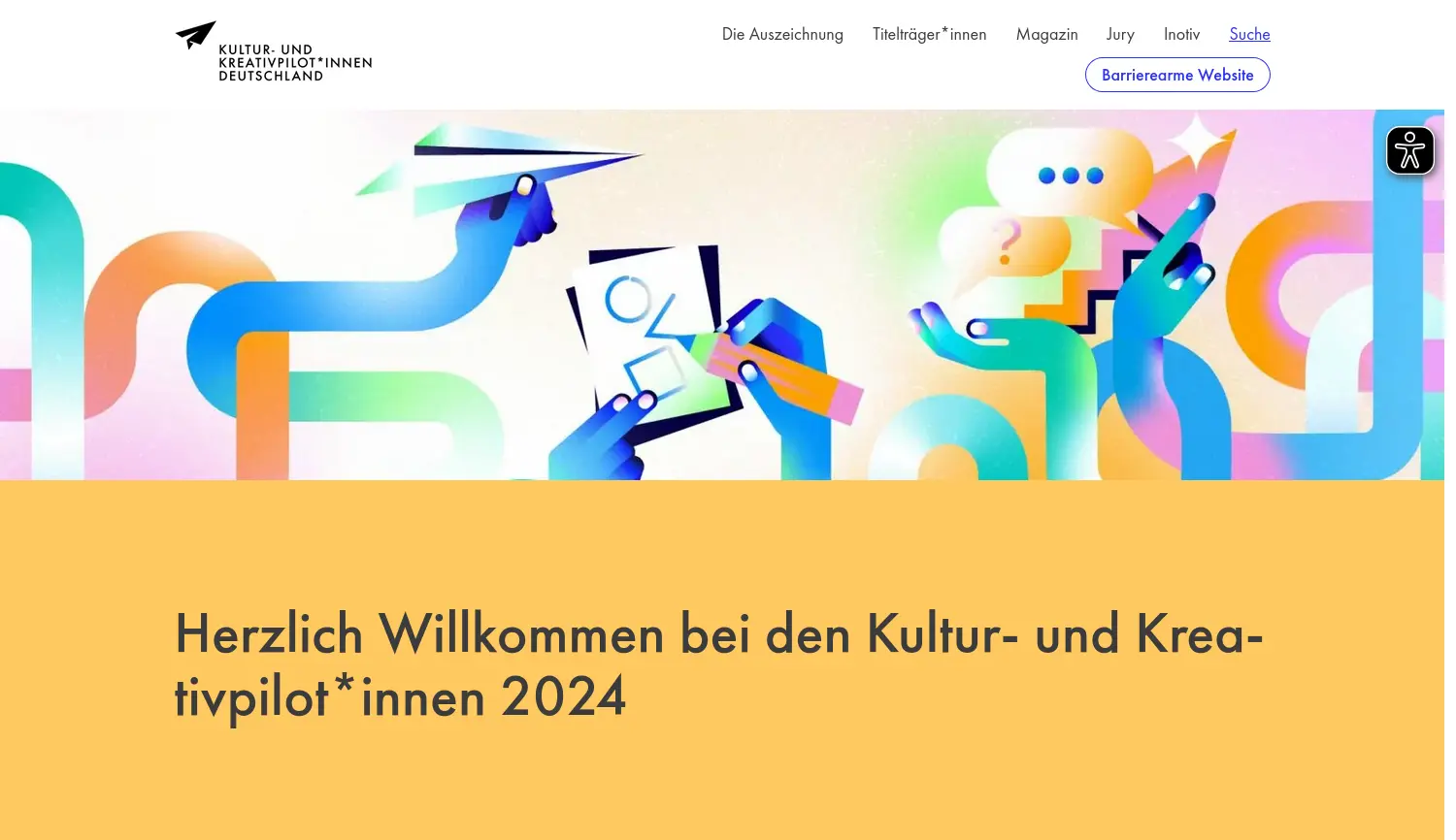Auszeichnung und Mentoring für die Mutmacher*innen der Kultur- und Kreativwirtschaft. Die Kultur- und Kreativpilot*innen Deutschland zeichnen jährlich 32 innovative Unternehmen der Kultur- und Kreativwirtschaft aus und bieten ihnen ein intensives Mentoring-Programm.
