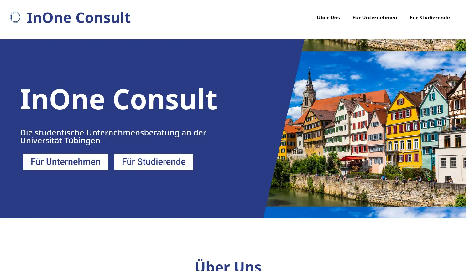 Die studentische Unternehmensberatung an der Universität Tübingen InOne Consult ist die studentische Unternehmensberatung der Universität Tübingen, die Unternehmen maßgeschneiderte Beratungsdienstleistungen und Studierenden wertvolle Praxiserfahrung bietet.