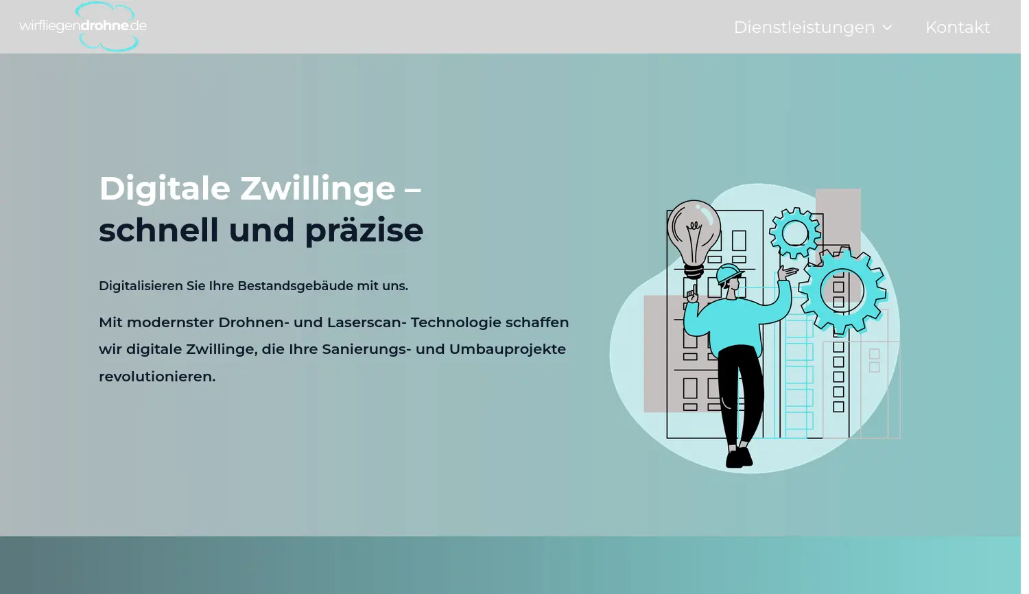 Digitale Zwillinge schnell und präzise für Bau- und Sanierungsprojekte. wirfliegendrohne.de erstellt digitale Zwillinge von Bestandsgebäuden mittels Drohnen- und Laserscan-Technologie für effiziente Bauprojekte.