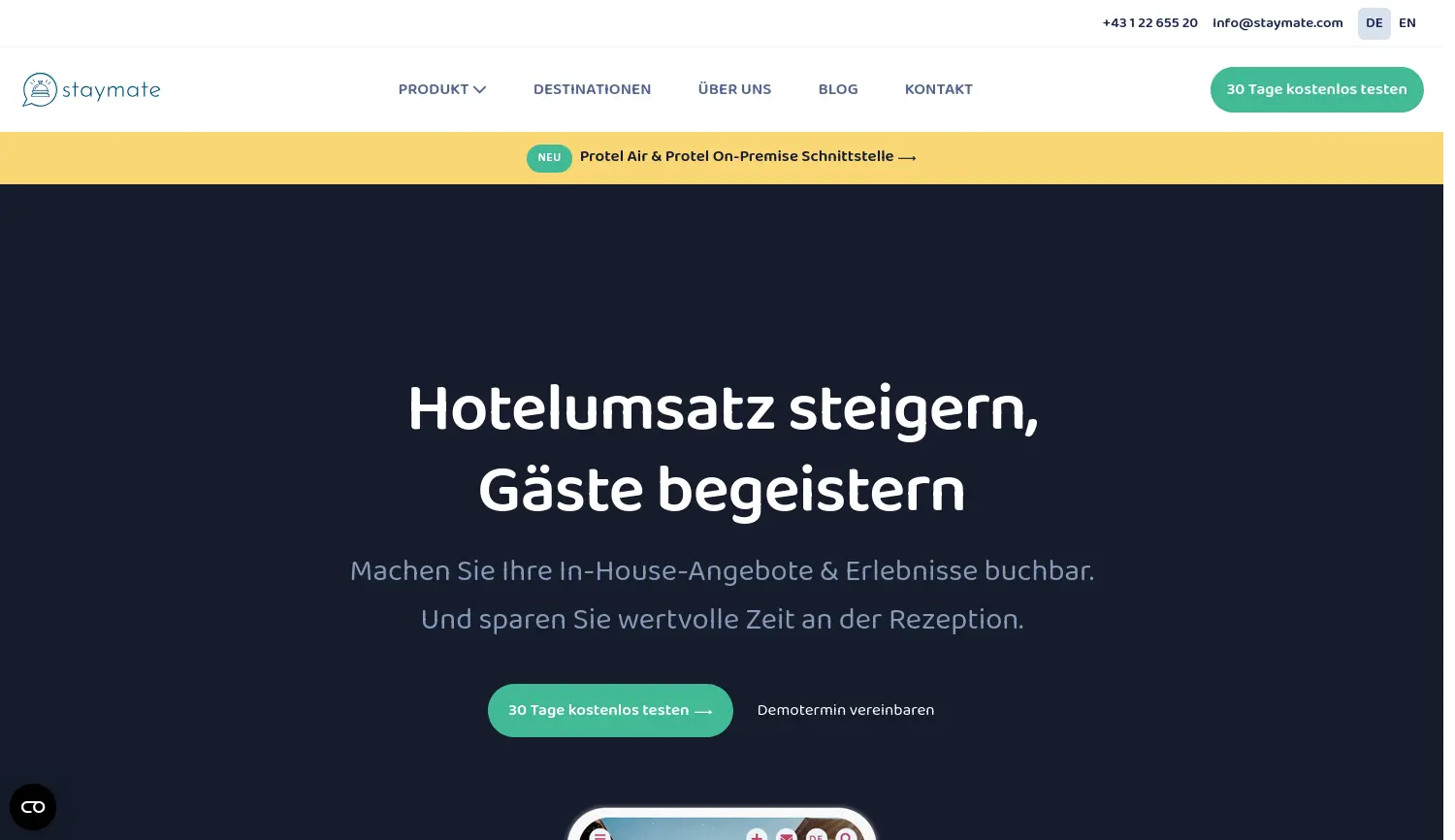 Die smarte Lösung zur Steigerung von Hotelumsatz und Gästeerlebnis. Staymate bietet eine innovative Plattform, um Hotels dabei zu unterstützen, ihren Umsatz zu steigern und die Gästezufriedenheit zu erhöhen.