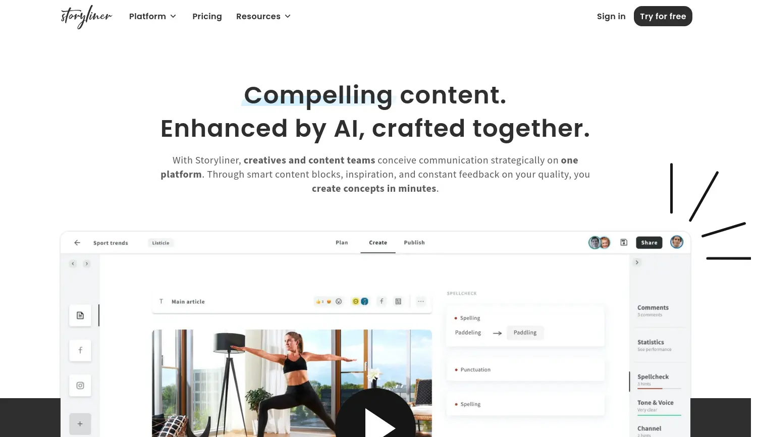 Überzeugender Content, durch KI optimiert und gemeinsam erstellt. Storyliner ist eine KI-gestützte Kreativplattform, die Content-Teams hilft, Kommunikation strategisch zu konzipieren und zu erstellen.