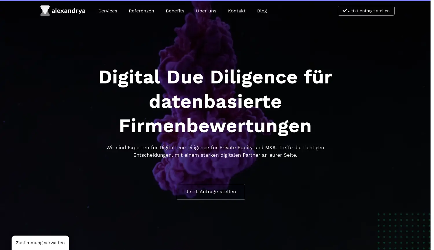 Digital Due Diligence für datenbasierte Firmenbewertungen alexandrya bietet datengesteuerte Digital Due Diligence und digitale Wachstumsstrategien für Private Equity und M&A Transaktionen.