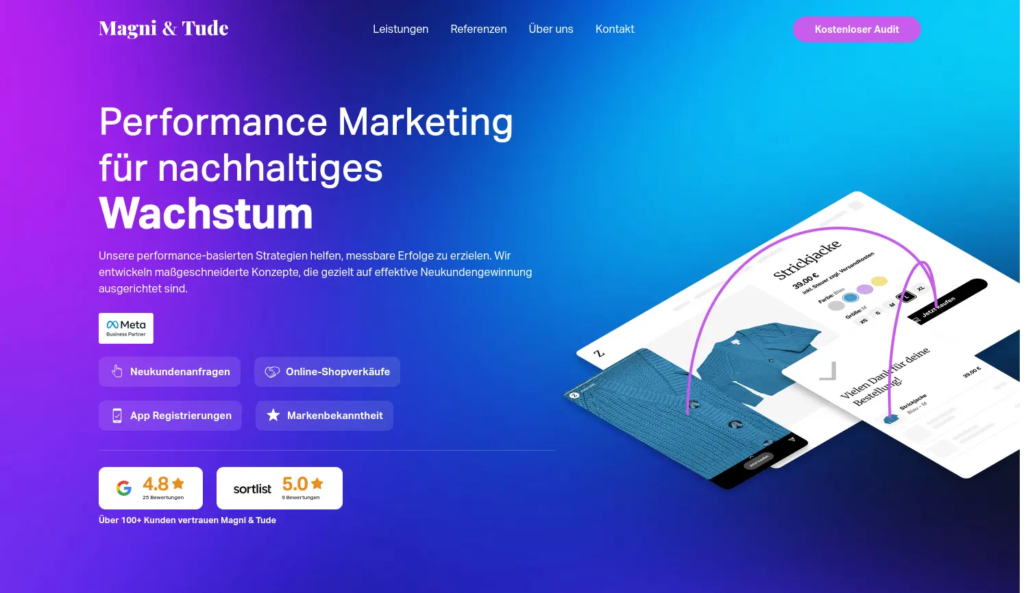 Performance Marketing für nachhaltiges Wachstum Magni & Tude ist eine Performance-Marketing-Agentur, die planbar Neukunden generiert und auf maßgeschneiderte, datengestützte Strategien, insbesondere für Finanzdienstleister, spezialisiert ist.
