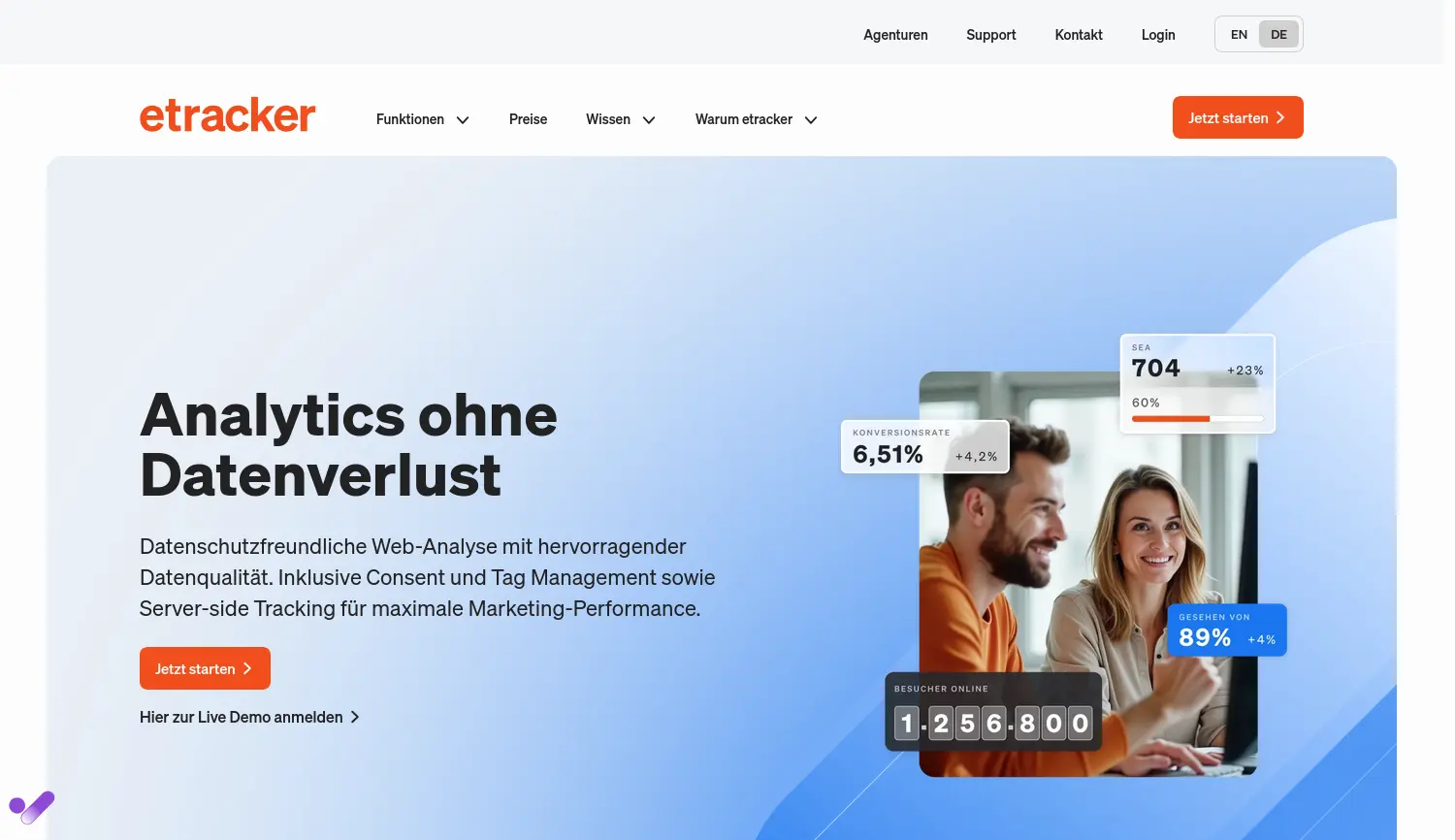 Die Google Analytics-Alternative 'Made in Germany' etracker bietet eine datenschutzkonforme Web-Analyse-Plattform aus Deutschland, die als Alternative zu Google Analytics dient und hohe Datenqualität ohne Einwilligung ermöglicht.