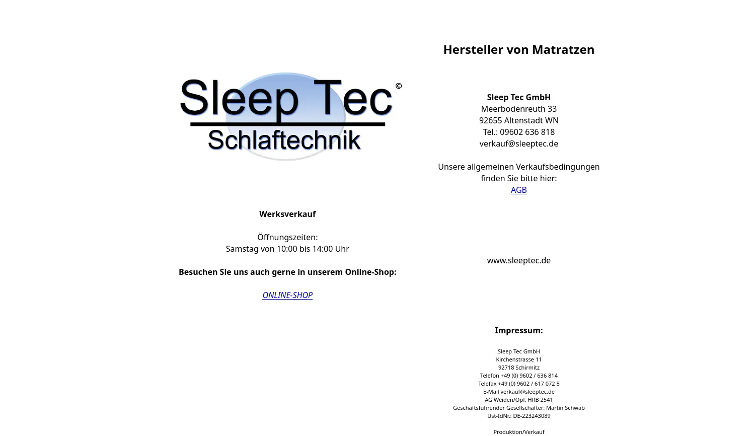 Qualität für gesunden Schlaf – Direkt vom Matratzenhersteller aus Bayern. Sleep Tec ist ein deutscher Hersteller von Matratzen und Schlaftechnik, der seine Produkte direkt über Online-Shop und Werksverkauf vertreibt.