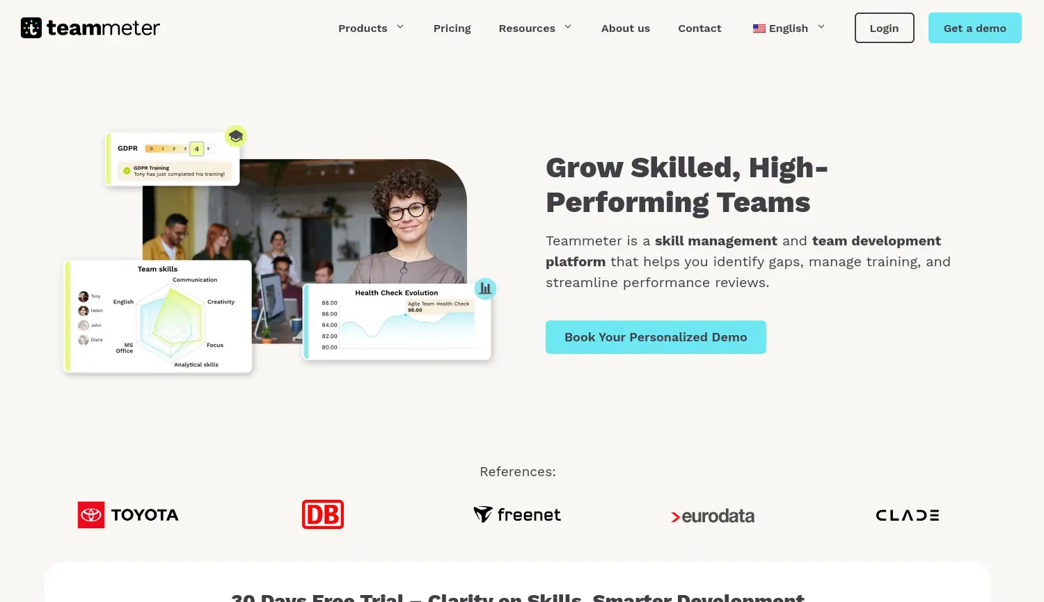 Wachsen Sie qualifizierte, leistungsstarke Teams. Teammeter ist eine Skill-Management- und Teamentwicklungsplattform, die Unternehmen hilft, Qualifikationslücken zu identifizieren und die Teamleistung zu optimieren.
