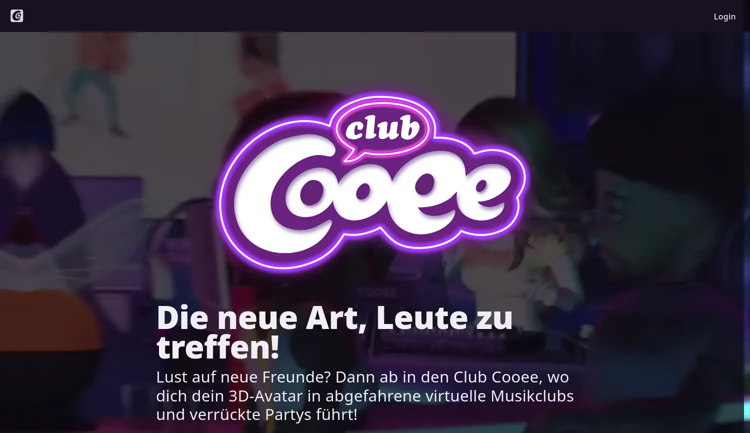 Die neue Art, Leute in einer immersiven 3D-Welt zu treffen! Club Cooee ist eine virtuelle 3D-Welt, in der Nutzer Avatare erstellen, in Musikclubs feiern und neue Freunde kennenlernen können.