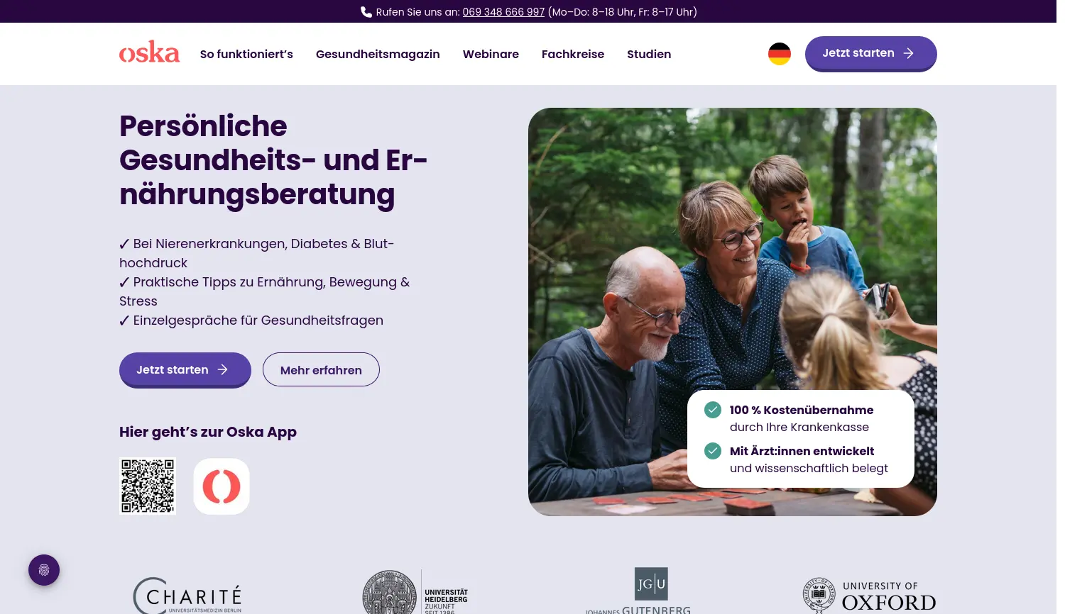 Persönliche Gesundheits- und Ernährungsberatung für Menschen mit chronischen Erkrankungen. Oska Health bietet chronisch kranken Menschen persönliche Gesundheits- und Ernährungsberatung sowie eine App zur kontinuierlichen Begleitung zwischen Arztterminen.