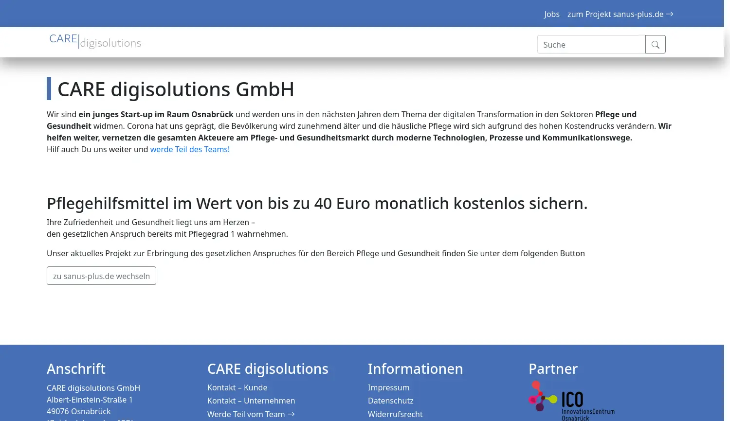 Der Anbieter für digitale Pflegelösungen und Partner für die digitale Transformation im Gesundheitswesen. CARE digisolutions bietet digitale Lösungen und Beratung für die Pflege- und Gesundheitsbranche und unterstützt Pflegebedürftige beim Bezug von Pflegehilfsmitteln.