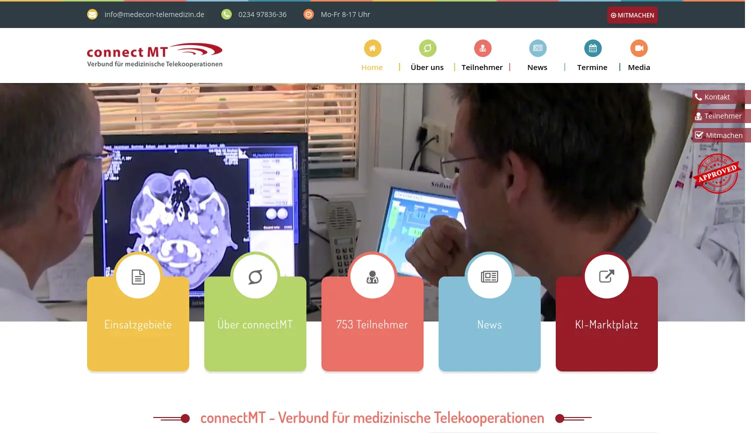 Der Verbund für medizinische Telekooperationen und Teleradiologie connectMT ist ein Verbund, der Kliniken und Praxen eine PACS-unabhängige und sichere Plattform für den Austausch medizinischer Bilddaten (DICOM E-Mail) im Rahmen von Telekooperationen bietet.