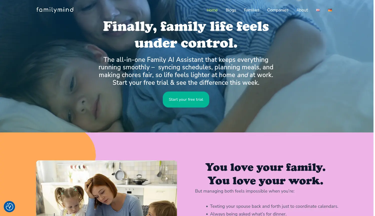 Der All-in-One Familien-KI-Assistent gegen den Mental Load. familymind ist ein All-in-One KI-Assistent, der Familien hilft, Termine zu synchronisieren, Mahlzeiten zu planen und Aufgaben fair zu delegieren, um den Mental Load zu reduzieren.