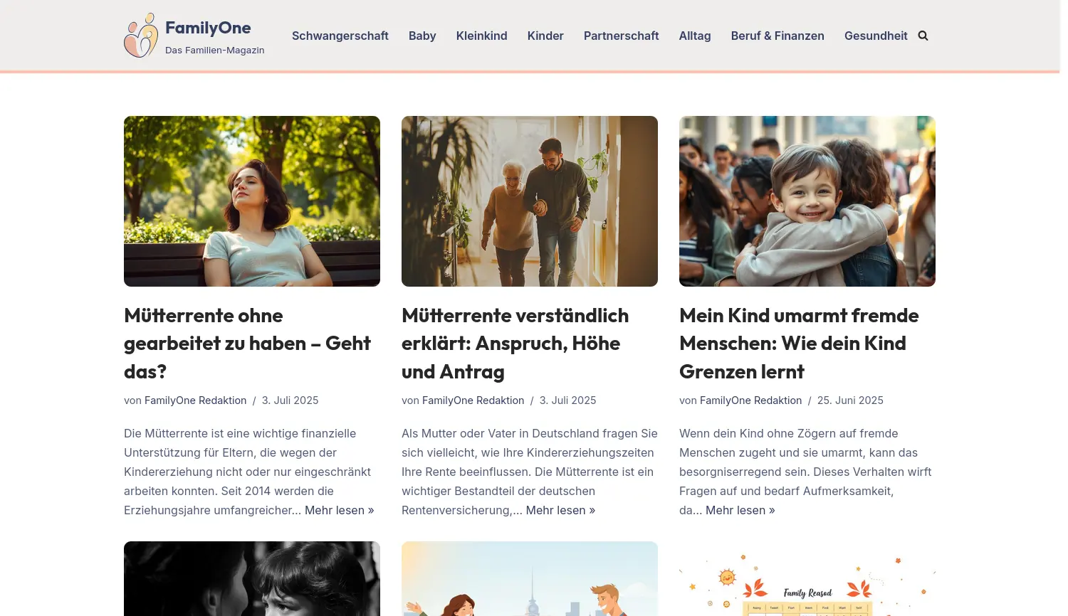 Das führende Online-Magazin für Erziehung, Finanzen und das moderne Familienleben. FamilyOne ist ein deutsches Online-Magazin, das Eltern umfassende Informationen zu Erziehung, Entwicklung, Partnerschaft und Finanzen anbietet.
