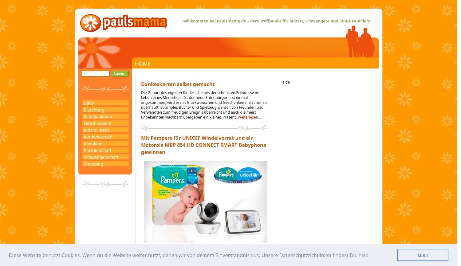 Der Treffpunkt für Mütter, Schwangere und junge Familien! PaulsMama.de ist ein Online-Magazin und Treffpunkt für Mütter, Schwangere und junge Familien mit Fokus auf Baby- und Familienthemen.