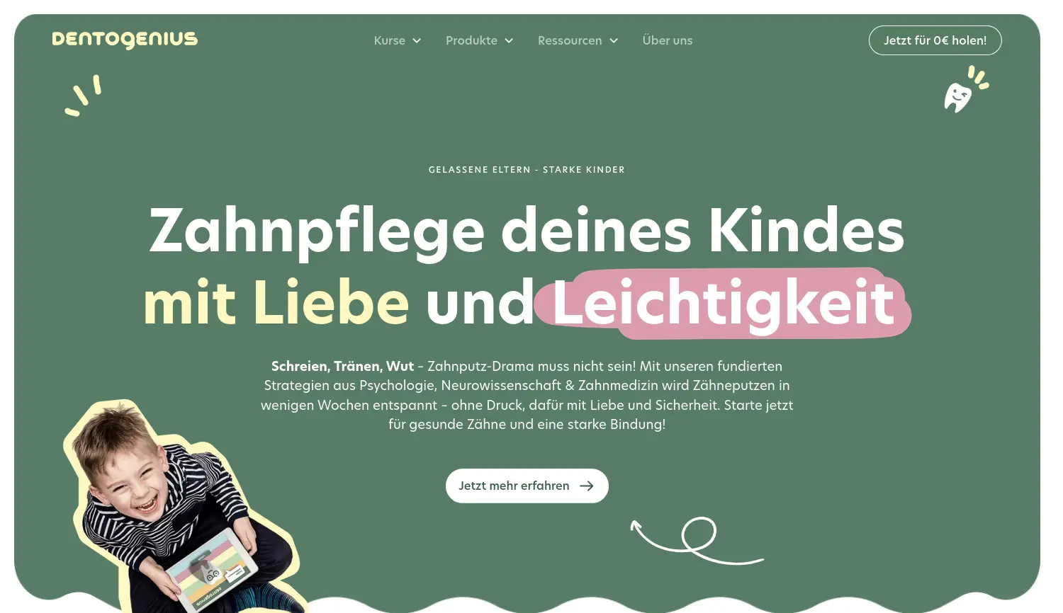 Ganzheitliche Zahngesundheit für Kinder & Eltern DentoGenius bietet evidenzbasierte Online-Kurse und Ressourcen von Experten, um Eltern dabei zu unterstützen, die Mundgesundheit ihrer Kinder stressfrei und ganzheitlich zu stärken.