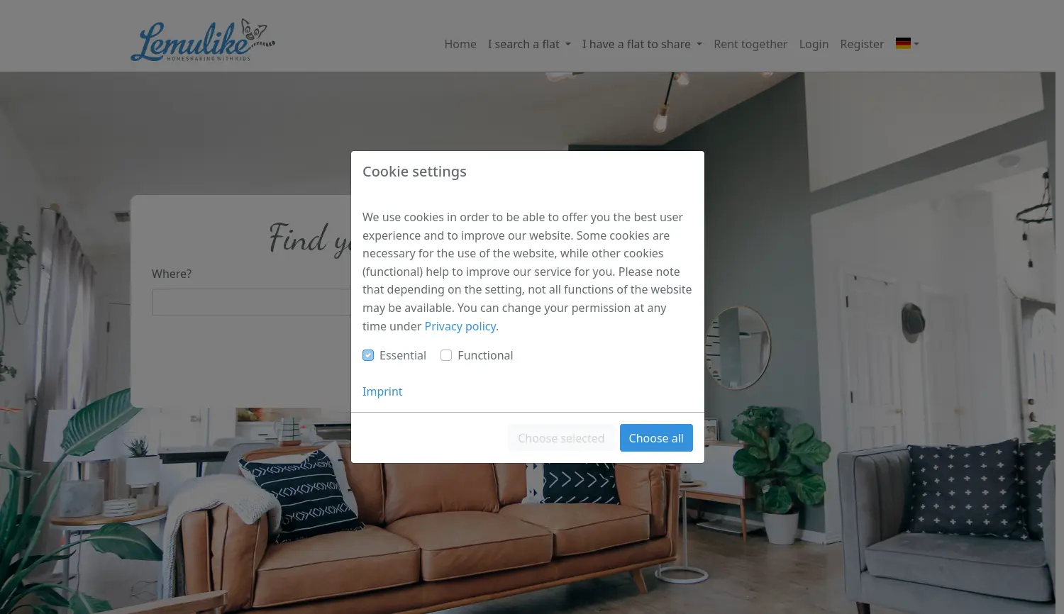 Dein Portal für Homesharing und Wohngemeinschaften mit Kindern. Lemulike ist ein Online-Portal, das Alleinerziehende bei der Suche nach geeigneten Mitwohngelegenheiten und Mitbewohnern mit Fokus auf Familienbedürfnisse unterstützt.