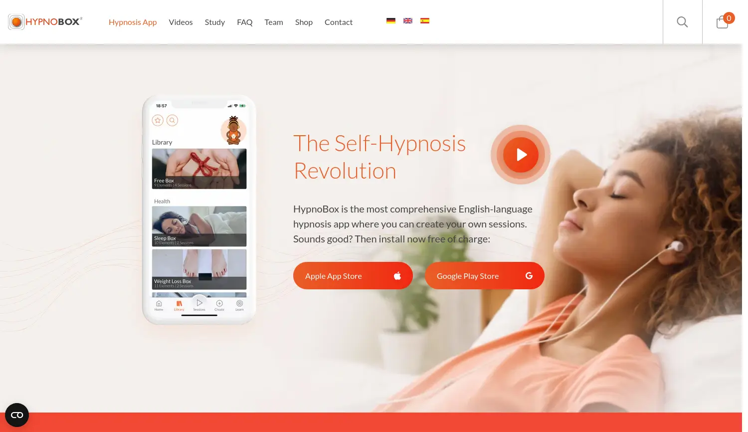 Die Self-Hypnosis Revolution. HypnoBox ist eine modulare Hypnose-App, die es Benutzern ermöglicht, aus über 600 Suggestionen personalisierte Selbsthypnose-Sitzungen zu erstellen.