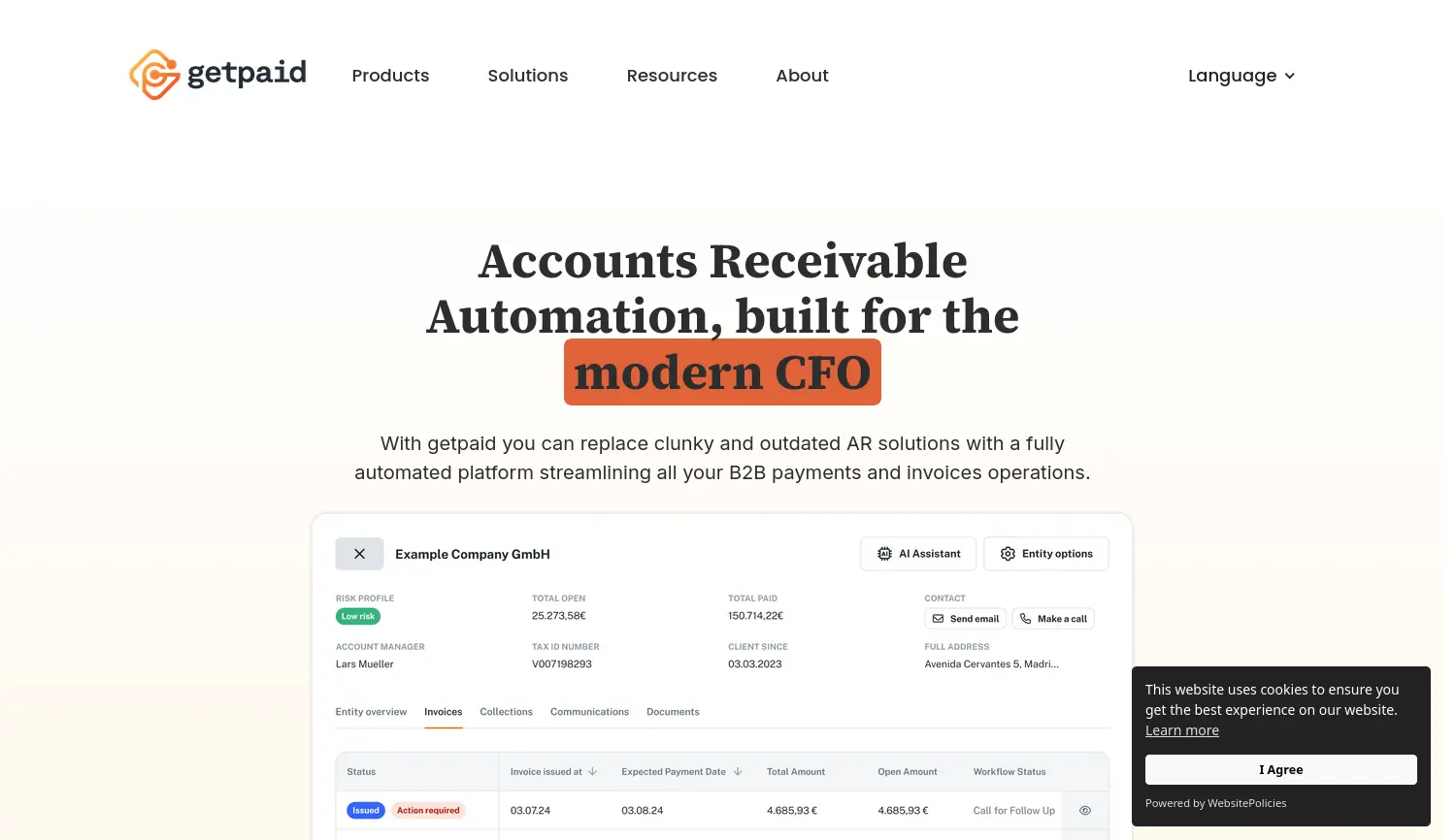 Automatisierte Debitorenverwaltung und B2B-Zahlungslösungen für moderne CFOs. getpaid bietet eine automatisierte Plattform, die veraltete Debitorenlösungen ersetzt und den gesamten Quote-to-Cash-Prozess für B2B-Unternehmen optimiert.