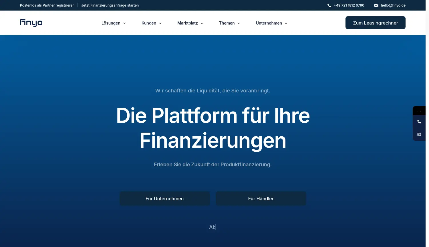 Wir vereinfachen die Unternehmensfinanzierung. Finiata bietet eine modulare Embedded-Finance-Plattform für Partner, um ihren Geschäftskunden digitale Kreditprodukte und Liquiditätslösungen bereitzustellen.