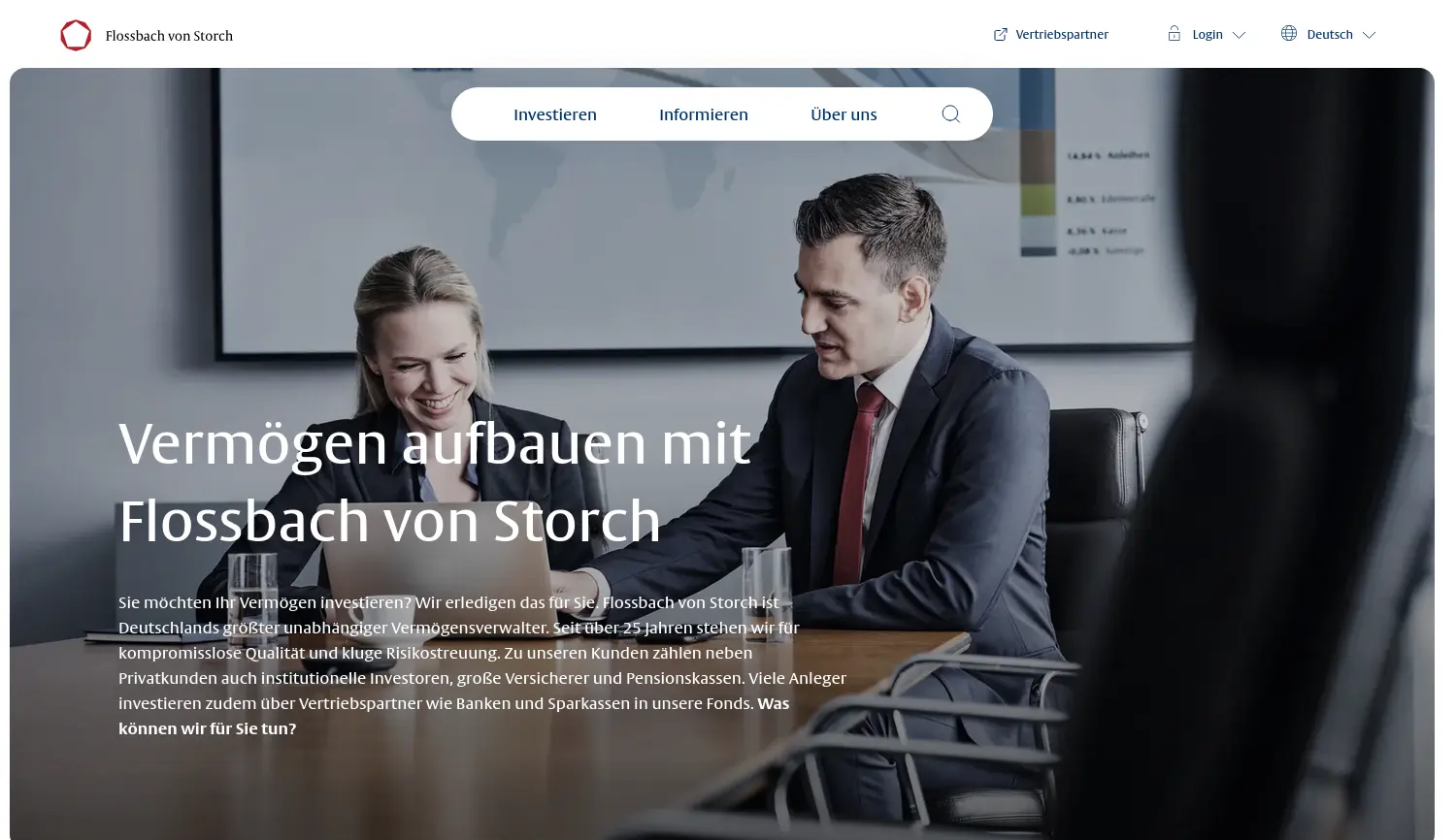 Vermögen aufbauen mit Deutschlands größtem unabhängigen Vermögensverwalter. Flossbach von Storch ist Deutschlands größter unabhängiger Vermögensverwalter, der Multi-Asset-Fonds und private Vermögensverwaltung für Privat- und institutionelle Kunden anbietet.
