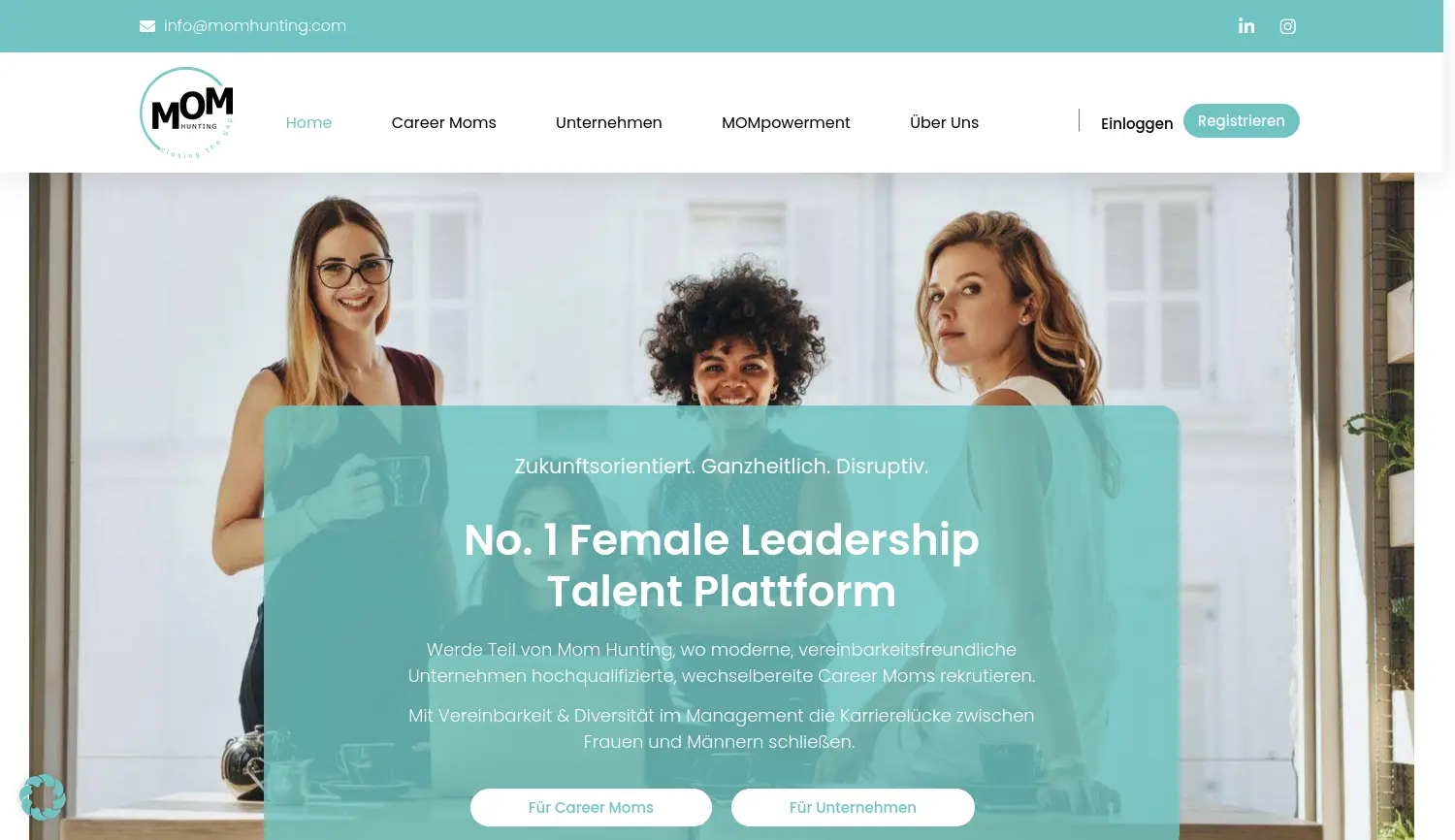 Die No. 1 Female Leadership Talent Plattform Mom Hunting ist die führende Diversity Recruiting Plattform, die hochqualifizierte Career Moms mit vereinbarkeitsfreundlichen Unternehmen verbindet.