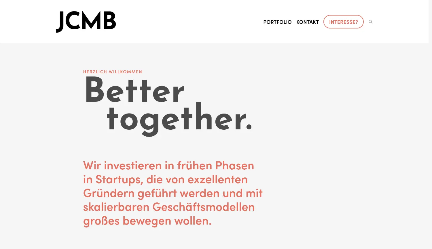 Kapital und Expertise für Startups in der Frühphase. JCMB Beteiligungs ist eine Venture Capital Gesellschaft, die in frühe Phasen digitaler Startups mit skalierbaren Geschäftsmodellen investiert.