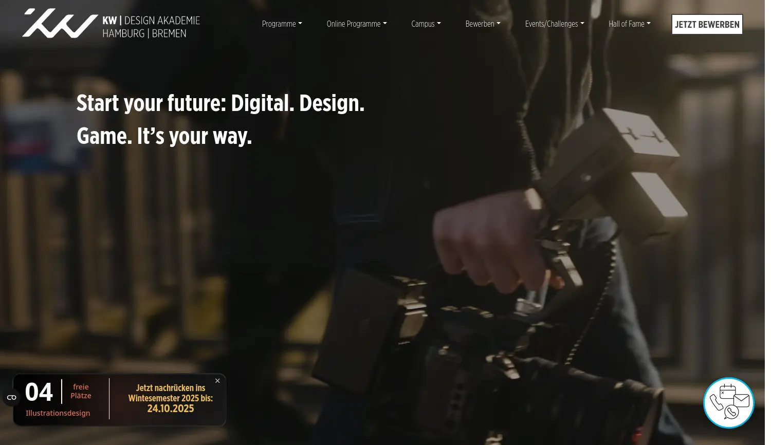 Kreative Studiengänge für Deine Zukunft im Design. Die KW Design Akademie ist eine Berufsfachschule für Gebrauchsgrafik, die kreative Studiengänge in Kommunikations-, Game-, Illustrations- und Digital Media Design anbietet.