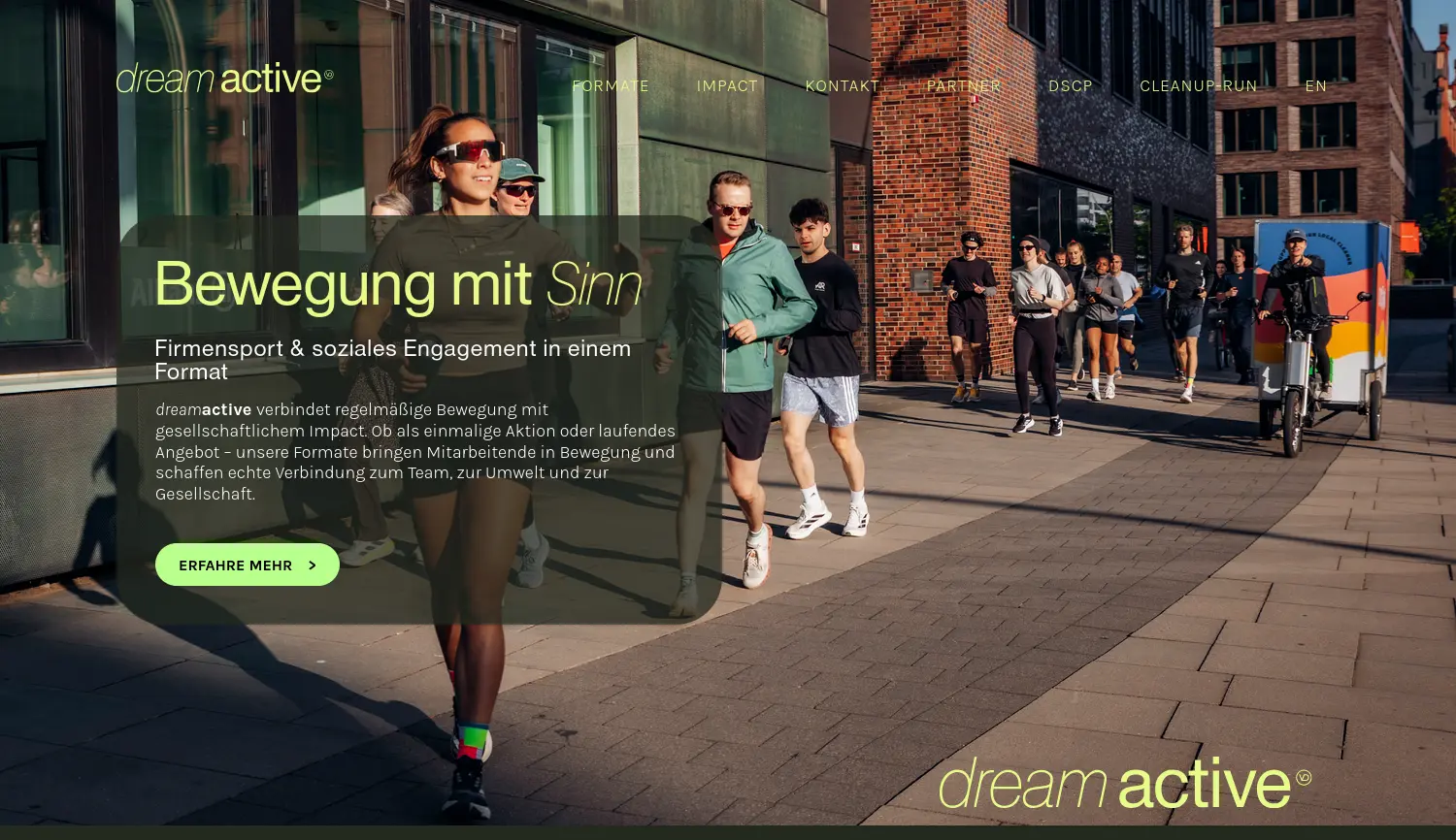 Bewegung mit Sinn dream active bietet modulare Firmensport-Einheiten, die regelmäßige Bewegung mit gesellschaftlichem Engagement und CSR-Mehrwert für Unternehmen verbinden.