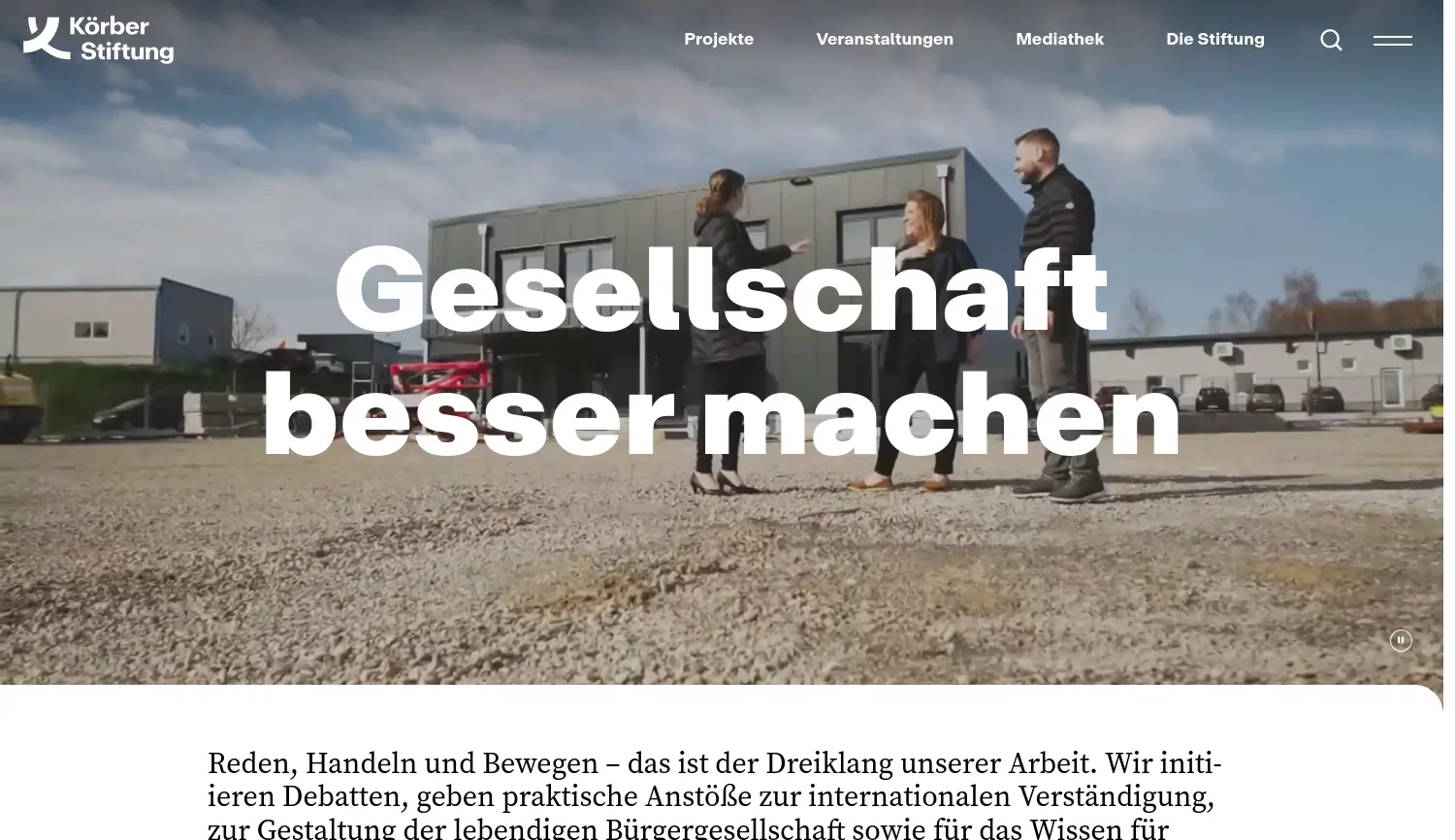 Reden, Handeln und Bewegen – Gesellschaft besser machen. Die Körber-Stiftung initiiert Debatten und fördert Projekte in den Bereichen internationale Verständigung, Wissenschaft, Kultur und Bürgergesellschaft.