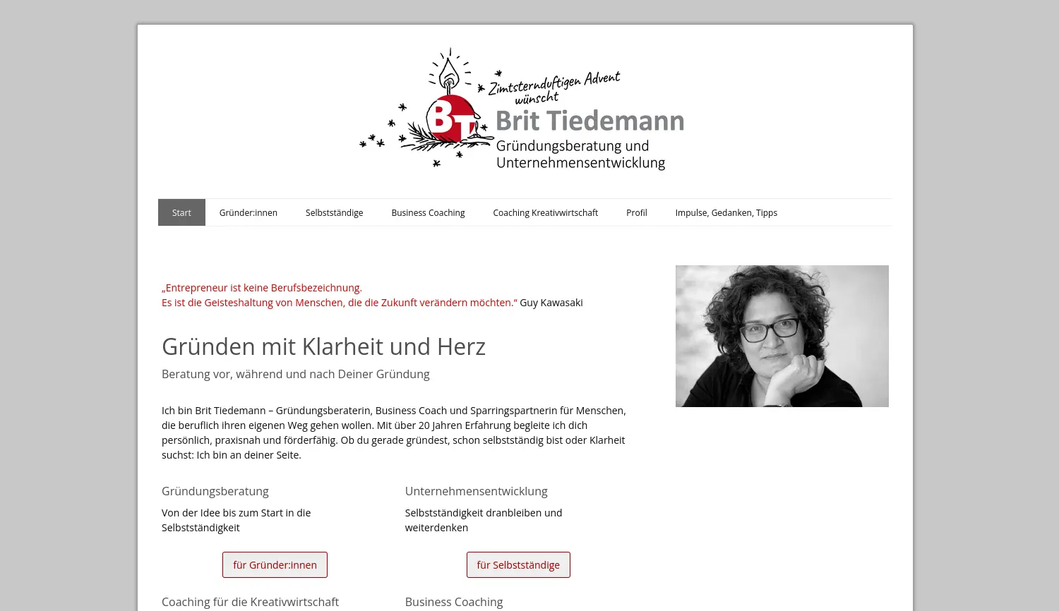 Gründen mit Klarheit und Herz – Beratung vor, während und nach Deiner Gründung. Brit Tiedemann bietet Gründungsberatung, Unternehmensentwicklung und Business Coaching für Gründer und Selbstständige mit Fokus auf Klarheit und Herz.