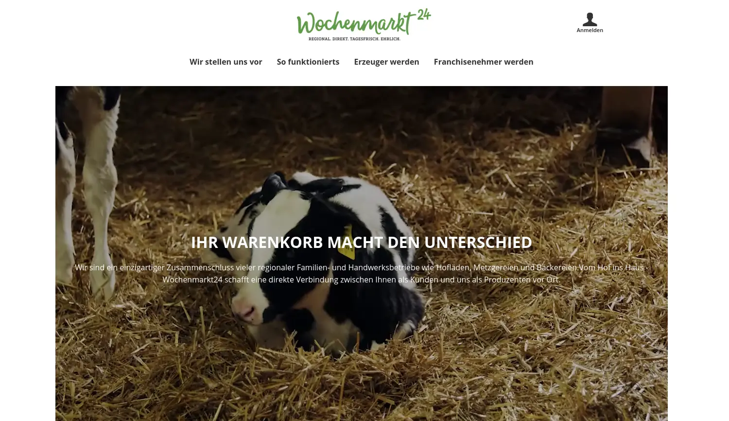 IHR WARENKORB MACHT DEN UNTERSCHIED Wochenmarkt24 ist ein Online-Marktplatz, der Kunden frische, regionale Produkte von lokalen Familien- und Handwerksbetrieben direkt nach Hause liefert.