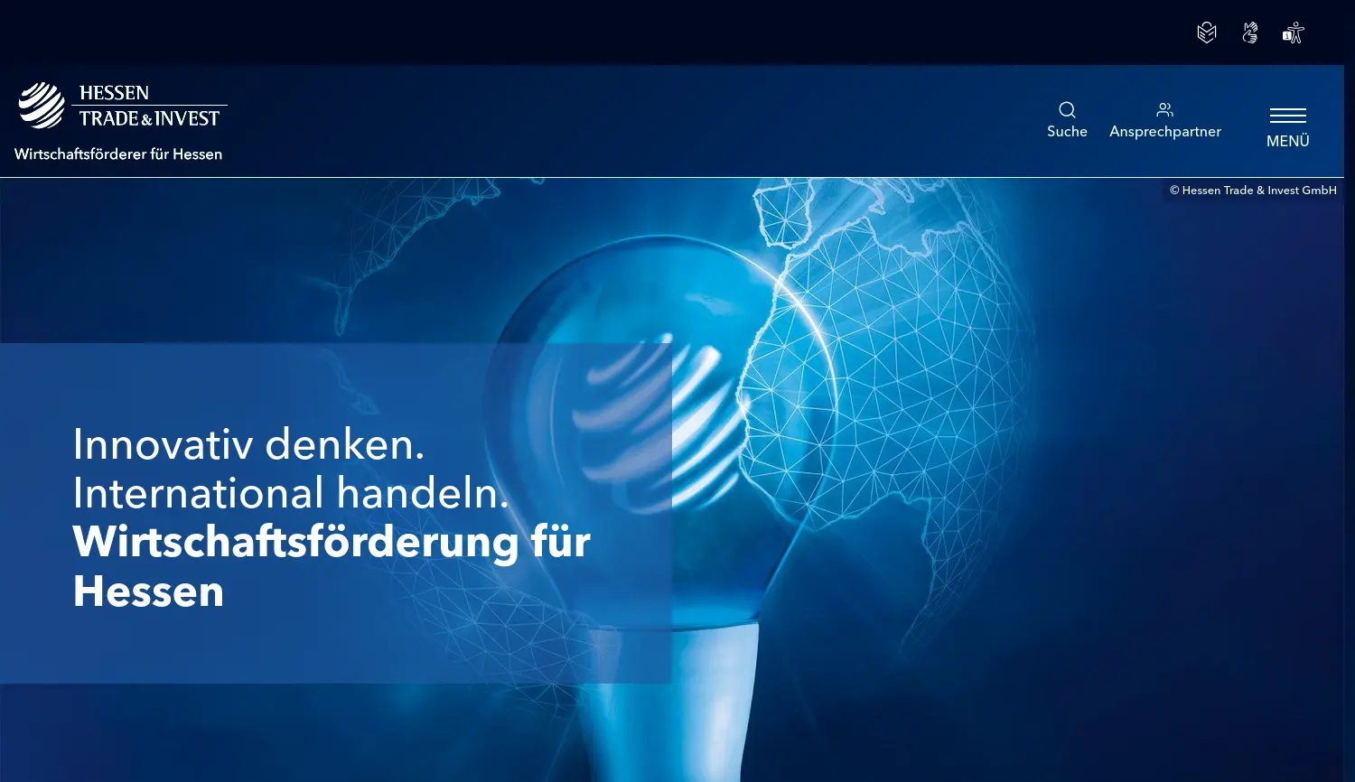 Innovativ denken. International handeln. Wirtschaftsförderung für Hessen. Die Hessen Trade & Invest GmbH ist die Wirtschaftsentwicklungsgesellschaft des Landes Hessen, die den Standort nachhaltig weiterentwickelt und dessen Wettbewerbsfähigkeit festigt.