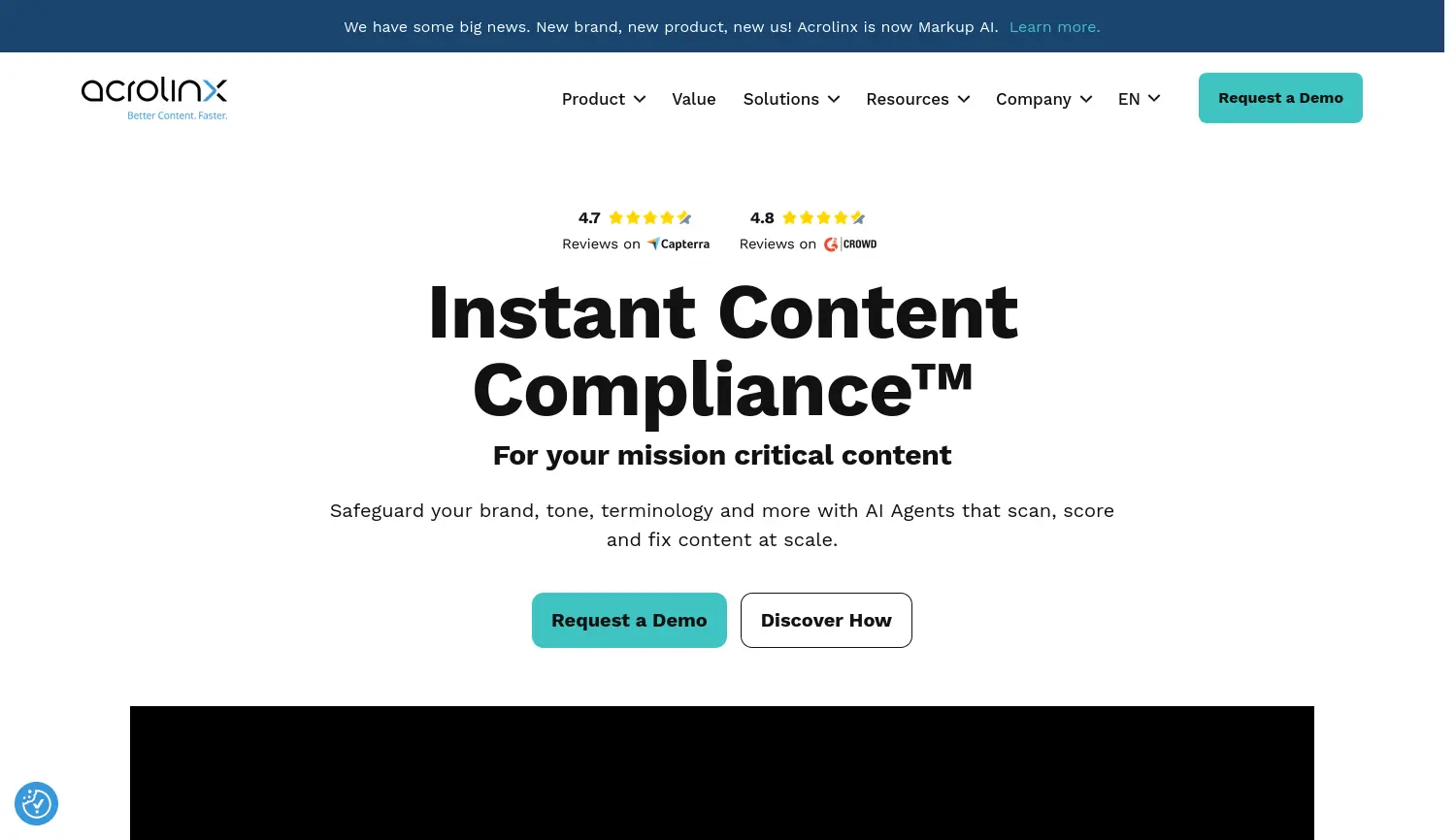 Instant Content Compliance™ für Ihre geschäftskritischen Inhalte Acrolinx bietet eine KI-gestützte Content-Governance-Plattform, die sicherstellt, dass Unternehmenscontent Markenstandards und regulatorische Anforderungen erfüllt.