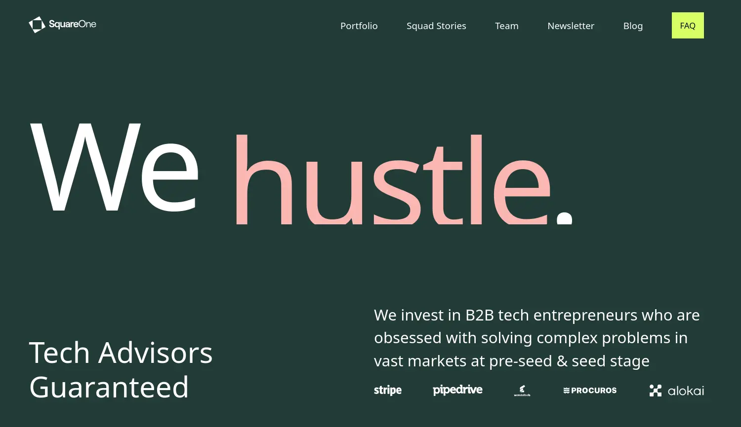 Wir investieren in B2B-Tech-Unternehmer, die komplexe Probleme in großen Märkten in der Pre-Seed- und Seed-Phase lösen. SquareOne ist ein Venture-Capital-Fonds, der sich auf Pre-Seed- und Seed-Investitionen in B2B-Technologieunternehmen fokussiert, die komplexe Marktprobleme lösen.