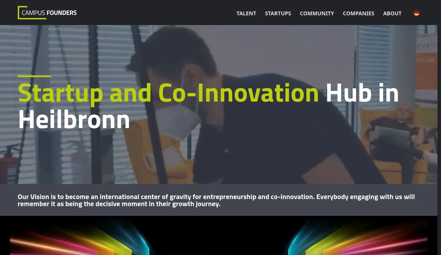 Das internationale Zentrum für Unternehmertum und Co-Innovation in Heilbronn. Campus Founders ist ein Hub für Unternehmertum und Co-Innovation in Heilbronn, der Startups, Talente und Unternehmen durch Programme wie Inkubatoren und Acceleratoren unterstützt.