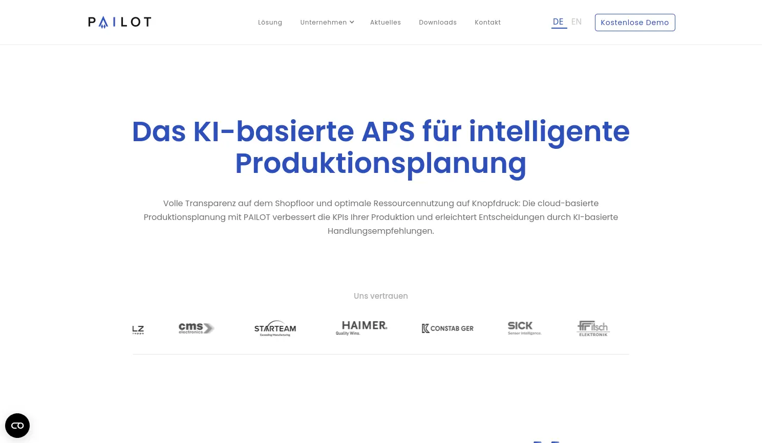 Das KI-basierte APS für intelligente Produktionsplanung. PAILOT bietet ein cloud-basiertes Advanced Planning and Scheduling (APS) System, das Künstliche Intelligenz nutzt, um die Produktionsplanung und Ressourcennutzung in Fertigungsunternehmen zu optimieren.