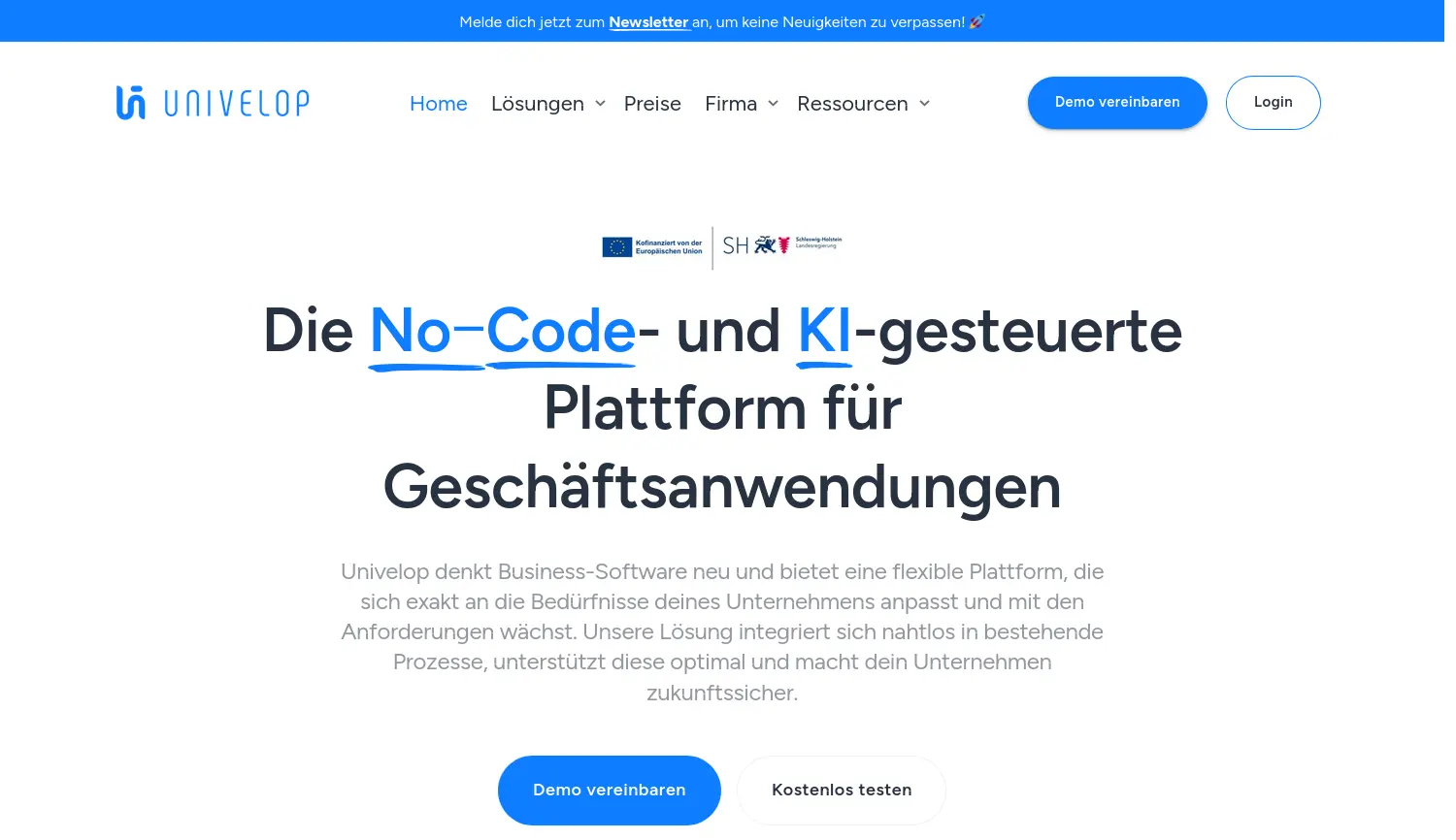 No Code. No Limit. Univelop ist eine flexible No-Code- und KI-gesteuerte Plattform zur Erstellung individueller Geschäftsanwendungen und zur Digitalisierung komplexer Unternehmensprozesse.