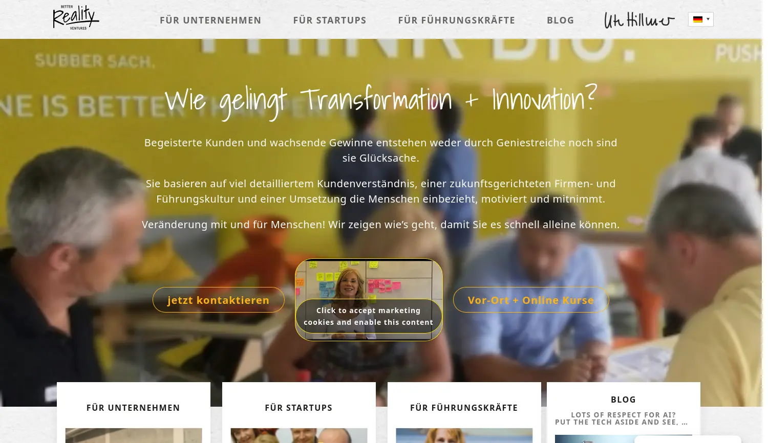 Veränderung mit und für Menschen: Wir zeigen, wie Transformation und Innovation durch tiefes Kundenverständnis gelingt. Better Reality Ventures bietet Beratungsleistungen, Workshops und Coaching an, um Unternehmen und Startups dabei zu helfen, erfolgreiche Innovationen auf Basis des Job-to-be-done-Ansatzes zu entwickeln.