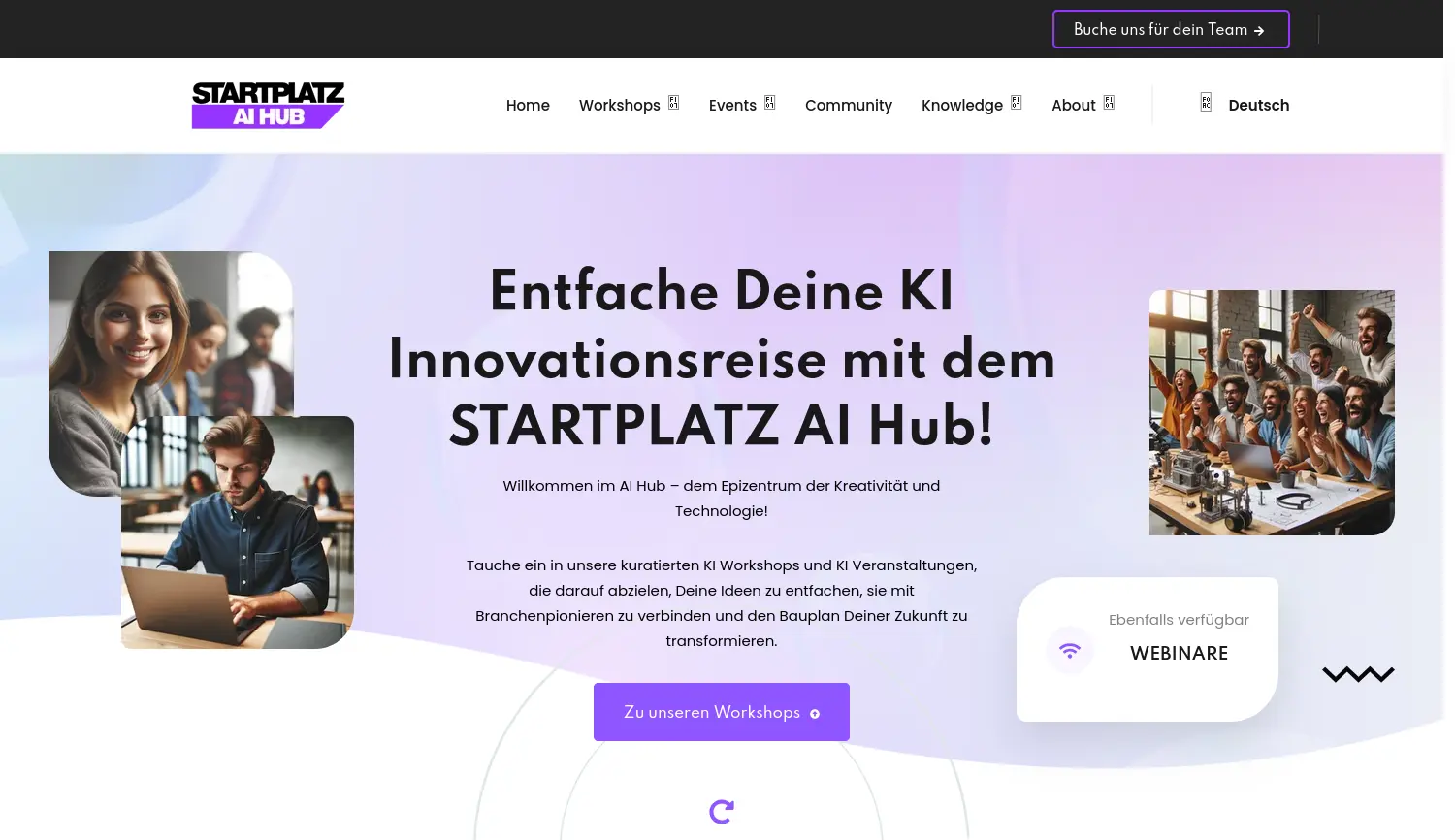 Entfache Deine KI Innovationsreise mit dem STARTPLATZ AI Hub. Der STARTPLATZ AI Hub ist ein deutsches Zentrum für generative KI, das durch Workshops, Bootcamps und Community-Events Einzelpersonen und innovative Unternehmen weiterbildet und unterstützt.