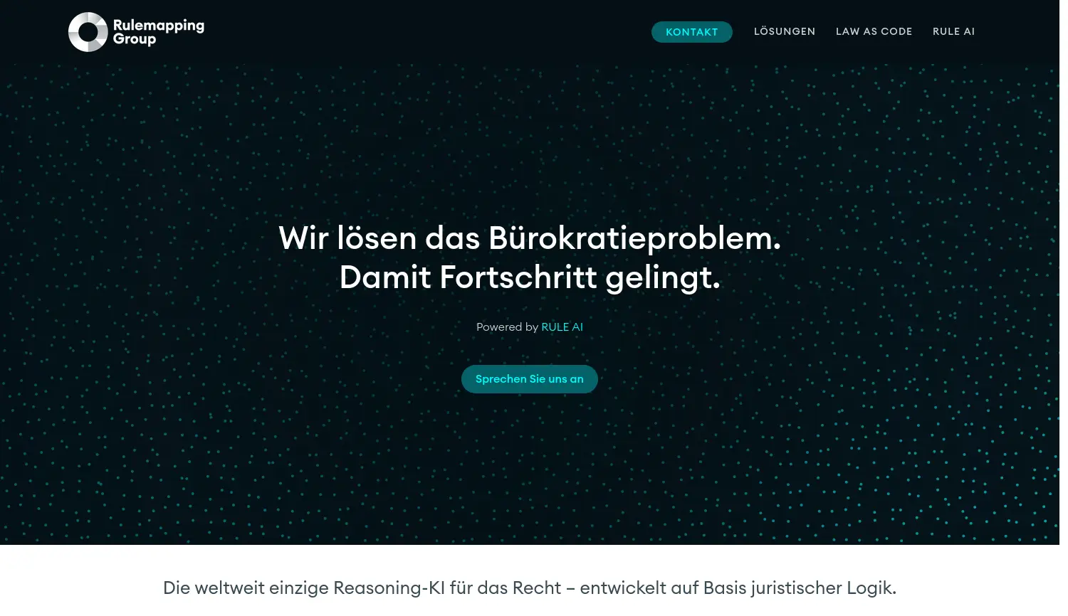 Die weltweit einzige Reasoning-KI für das Recht – entwickelt auf Basis juristischer Logik. Rulemapping bietet die weltweit einzige Reasoning-KI für den Rechtsbereich, um juristische Regeln in maschinenlesbare und für Menschen verständliche Entscheidungslogik zu übersetzen.