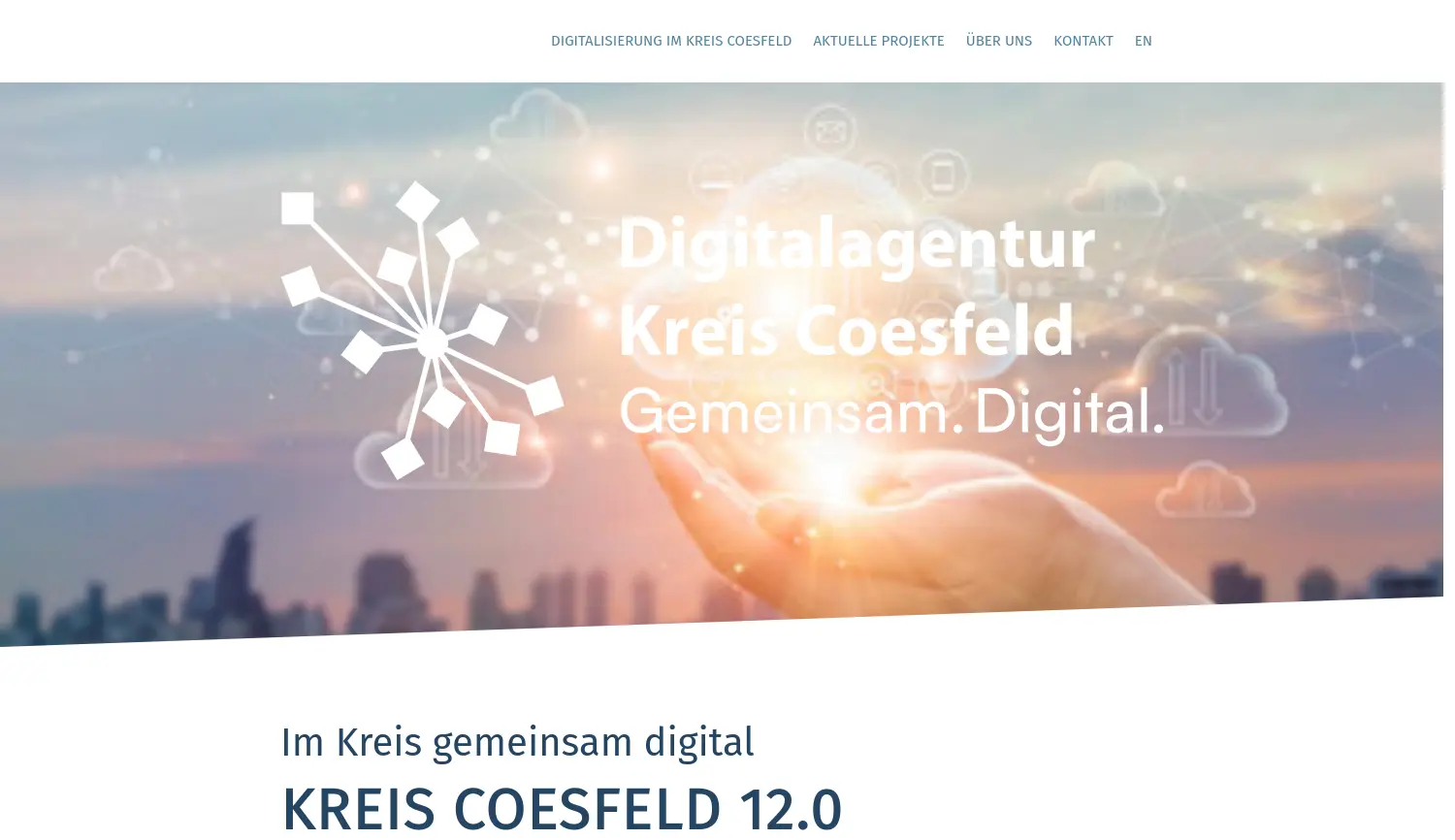 Im Kreis gemeinsam digital – Die Digitalagentur für den Kreis Coesfeld. Die Digitalagentur Coesfeld (COe) koordiniert die Digitalisierungsstrategie des Landkreises, um durch Projekte und Vernetzung die digitale Transformation für Kommunen, Wirtschaft und Bürger voranzutreiben.