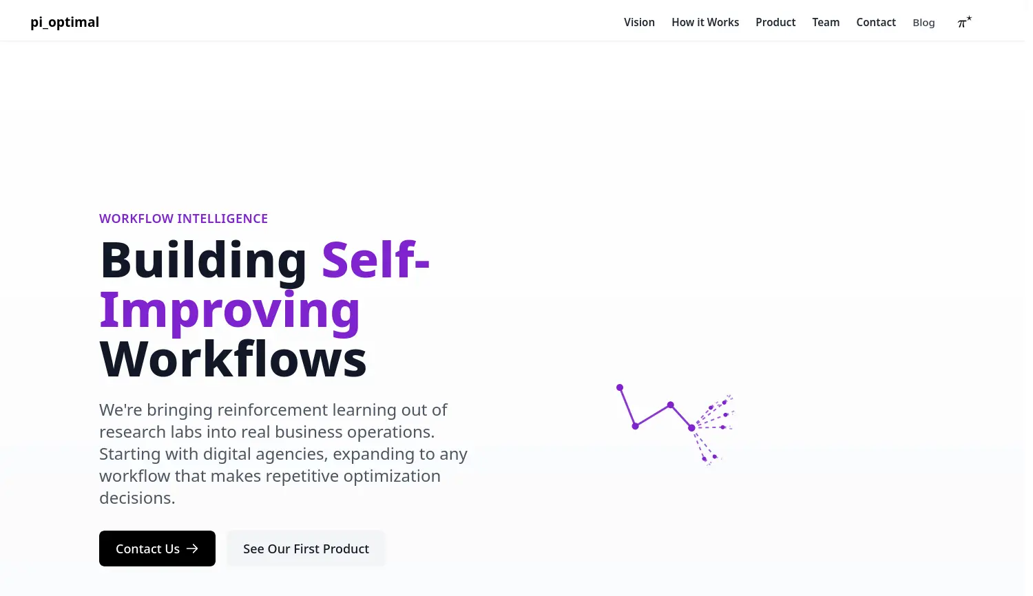 Selbstverbessernde Workflows durch Superhuman Reinforcement Learning. pi-optimal entwickelt KI-basierte selbstverbessernde Workflow-Automatisierung mithilfe von Reinforcement Learning, beginnend mit Tools zur Kampagnenoptimierung für digitale Agenturen.