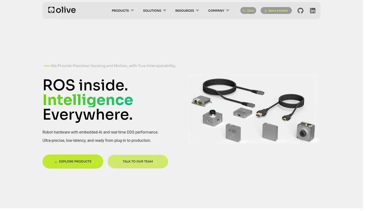 ROS integriert. Intelligenz überall. Olive Robotics entwickelt AI-native, ROS-betriebene Hardware-Module wie IMU/AHRS-Sensoren für Echtzeit-Sensorfusion und autonome Systeme.