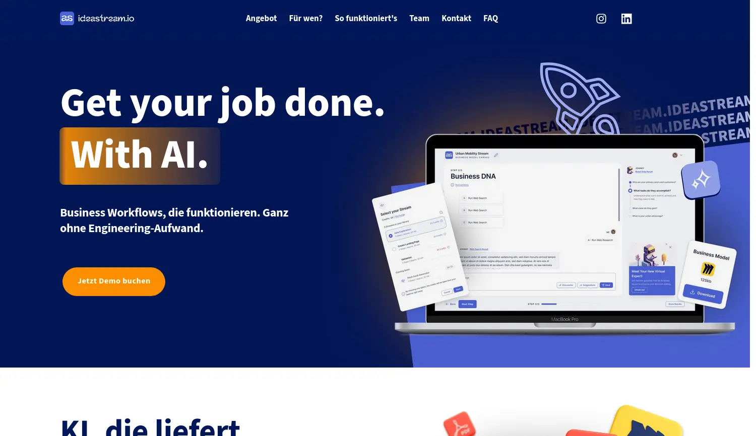 Business Workflows, die funktionieren. Ganz ohne Engineering-Aufwand. Ideastream ist eine modulare, KI-gestützte Workflowplattform, die in Minuten strukturierte, anschlussfähige Arbeitsergebnisse ohne Prompting-Kenntnisse liefert.
